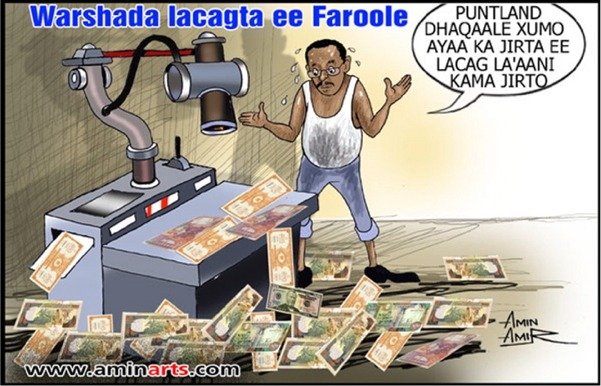 qufeysa oo uu si muuqata ugu dul qoray "Warshada lacagta ee Faroole".