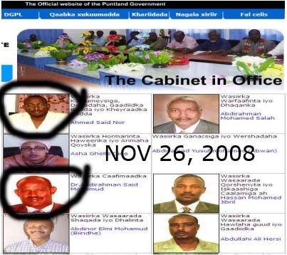 Laakiin waxaa (Nov 27, 2008, waqtiga Boosaaso) ku qoran shabakadda Xafiiska