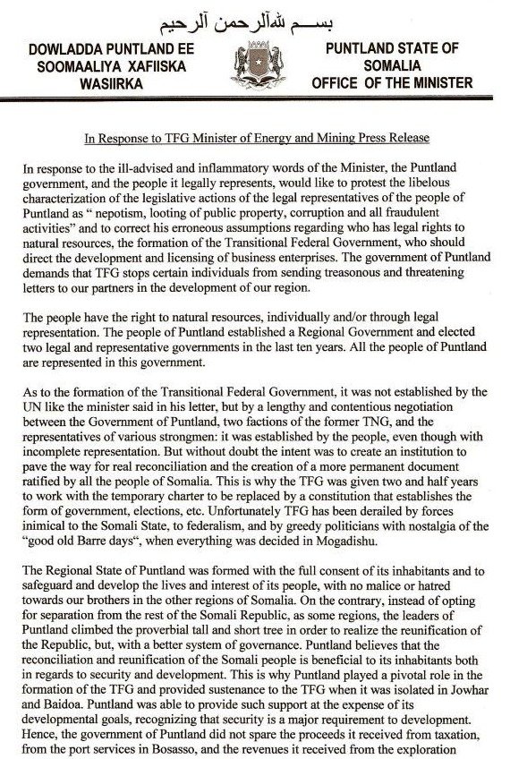 Garowe, Puntland: Press Release